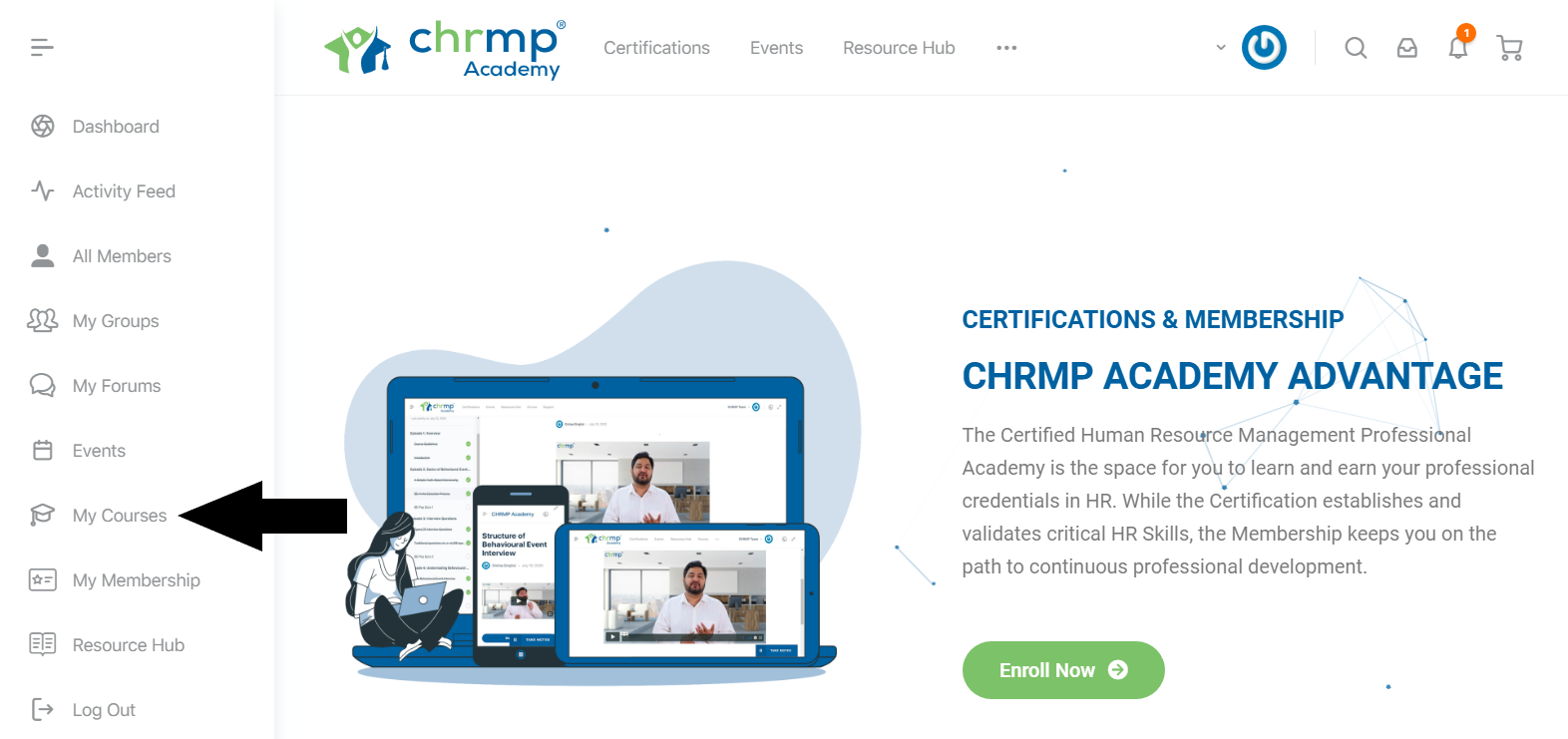 Step 1: Login into academy.chrmp.com with the login credentials that have been provided to you.