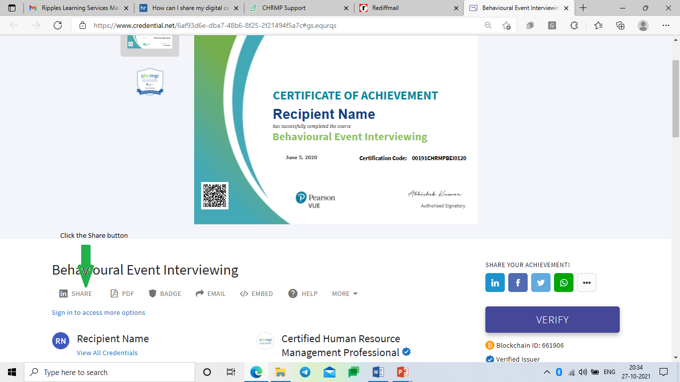 support@credential.net as well. The certificate will have your name instead of 'Recipient Name' given in the image. You should open the mail.